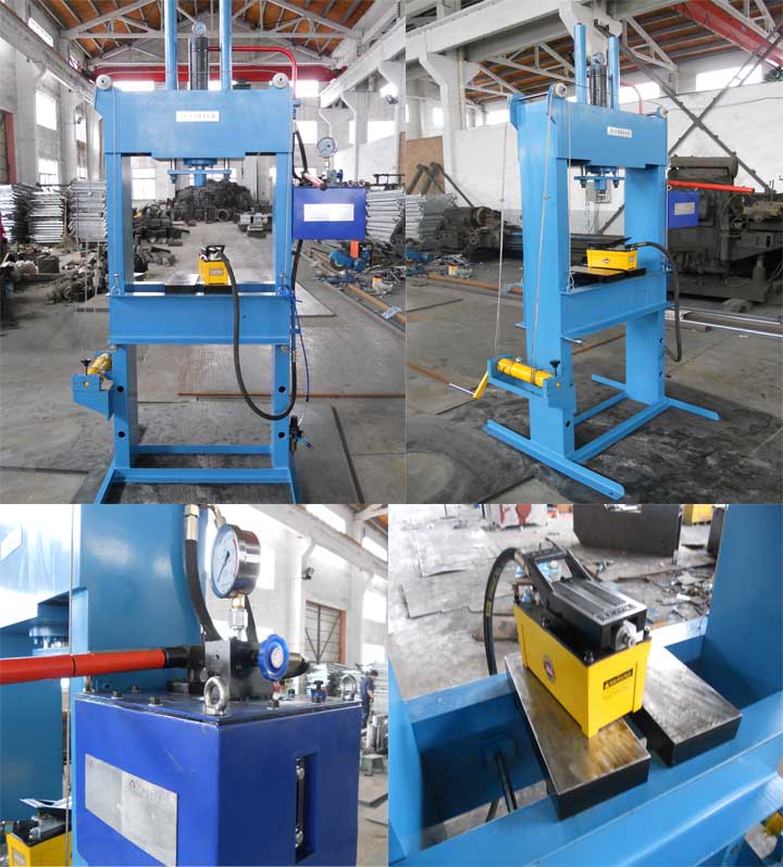 寬臺面四柱液壓機由主機及控制機構兩大部分組成,通過主管道及電氣裝置聯系起來構成一體。主機包括機身、主油缸、頂出油缸及允液系統寺。